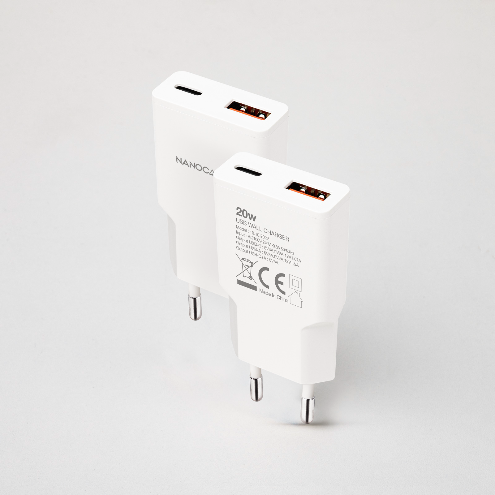 USB-C/PD 20W + USB-A/QC 20W, Blanco