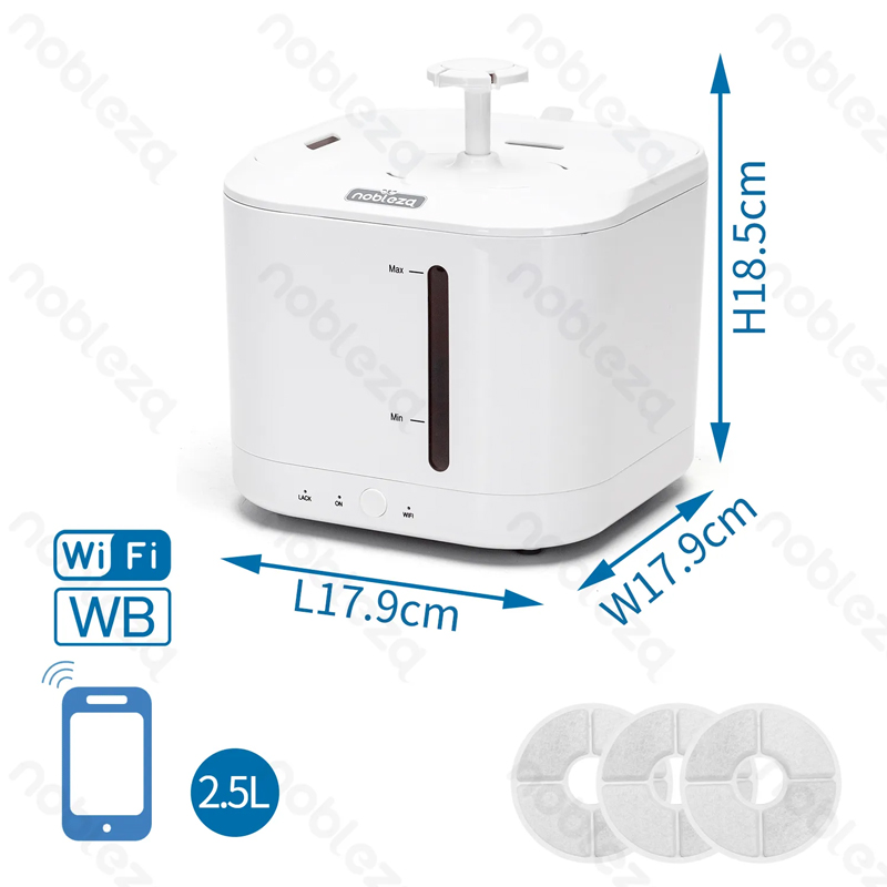 Fuente de agua inteligente 2,5/L silenciosa con control por app para mascotas.