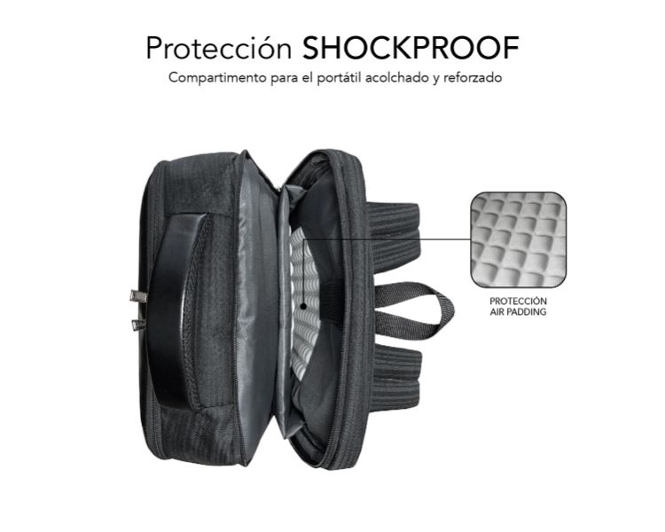 Departamento independiente con espacio acolchado para el portátil con sistema AIR PADDING de alta protección y doble cremallera de cierre