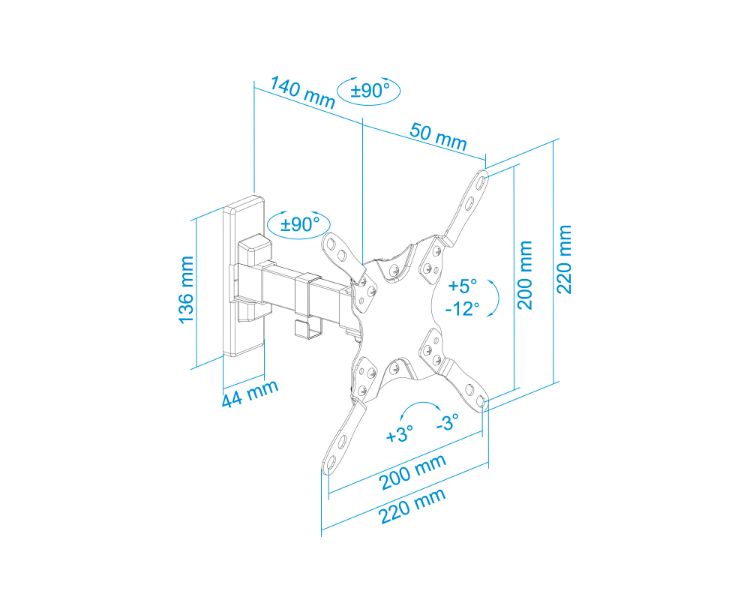 Colocación soporte: Pared Color del Producto: Negro Peso Maximo: 20kg Pulgadas Desde: 13 Pulgadas Hasta: 42 Tipo Soporte: BRAZO