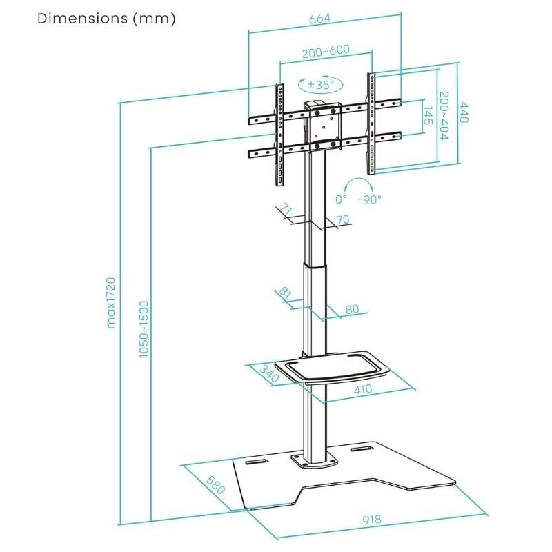 Soporte de Suelo Rotatorio/Ajustable TooQ FS2284M-B para TV de 37-70"/ hasta 70kg