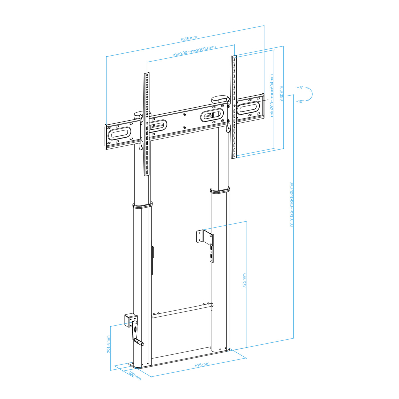 De 55 a 100"/ VESA máximo 1000x600/ Hasta 100kg/ Regulable en altura