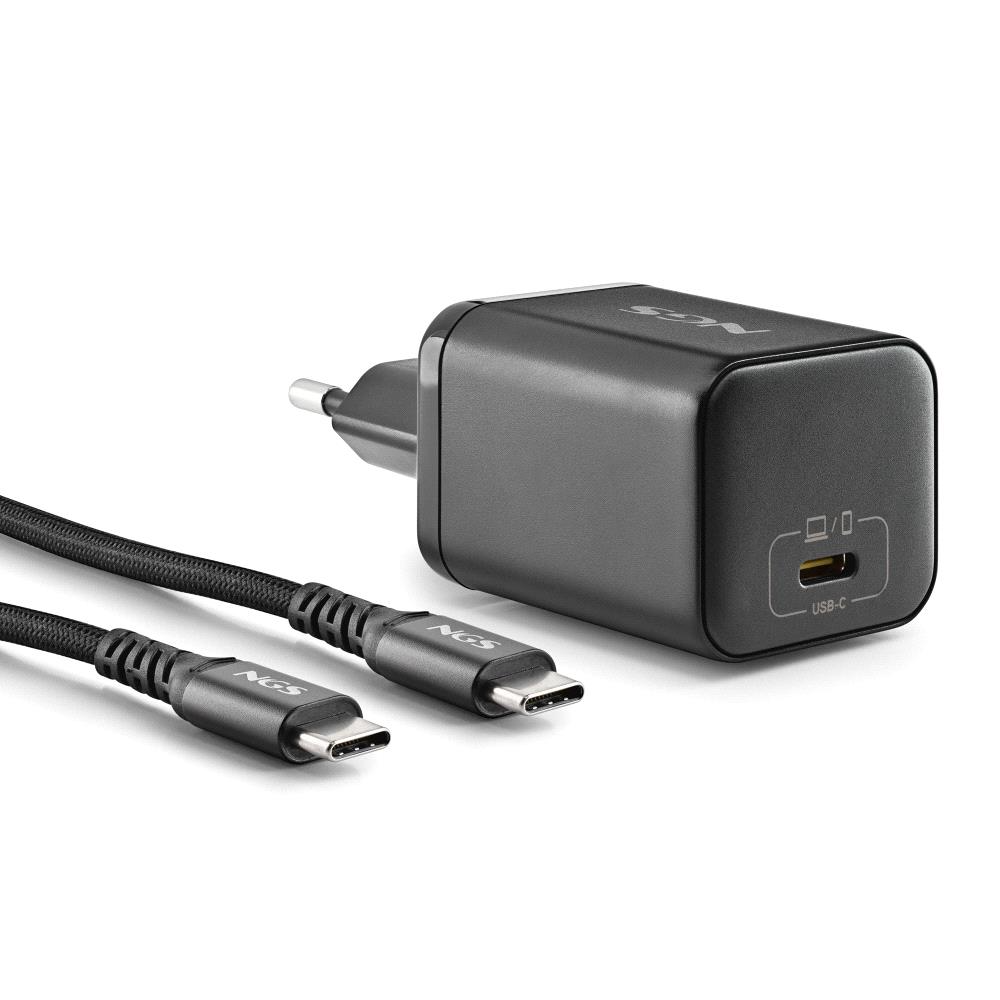 CARGADOR PARED GaN + CABLE 1.5 M USB-C + 8 CLAVIJAS HP 65W NEGRO NGS