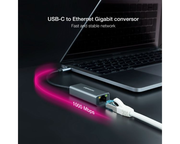 CONVERSOR USB-C A ETHERNET GIGABIT 10/100/1000 15cm GRIS NANOCABLE