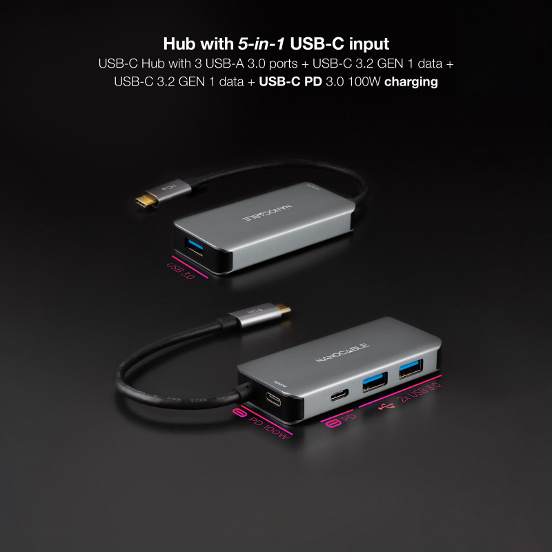 Convierte tu ordenador en un dispositivo multipuerto gracias a sus tres conectores USB-A y su conector USB-C, sin renunciar a cargar tus dispositivos al incorporar un puerto USB-C PD. Además, está diseñado para que puedas llevarlo contigo allá donde vayas.