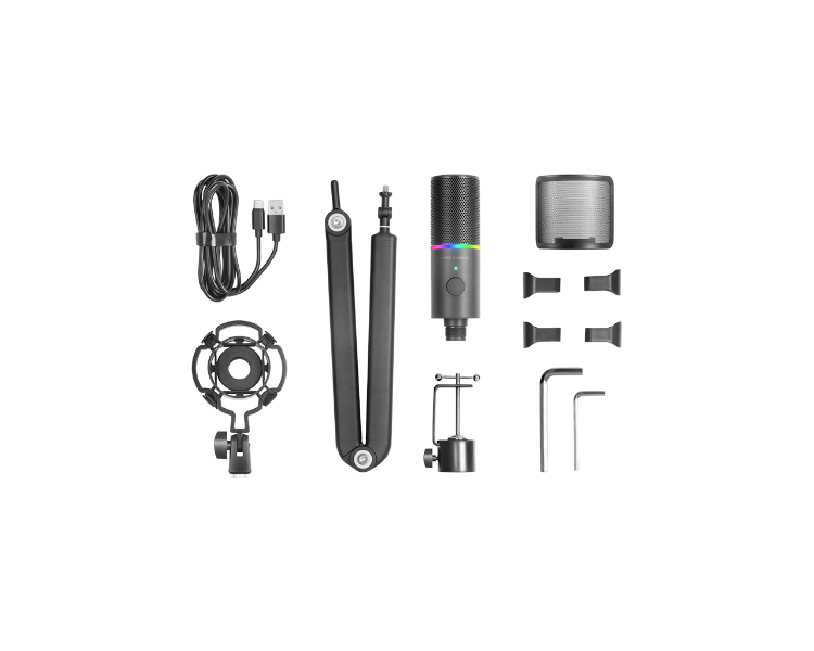 Da el salto profesional definitivo con el MMIC-XT. Un micrófono de estudio de alta definición (ADC 192 kHz) con iluminación DYNAMIC ARGB RING, brazo mecánico sólido y ajustable omnidireccional, soporte antivibración, filtro antipop de malla metálica y entrada Jack de auriculares sin latencia. Conexión USB plug & play y construcción completamente de metal para una durabilidad extrema.