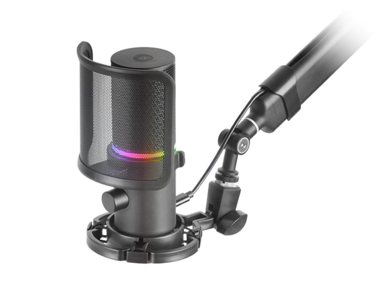 Soporte de amortiguación antivibratorio/ Filtro Pop de malla metálica/ Brazo de pluma omnidireccional/ Iluminación Dynamic ARGB Ring