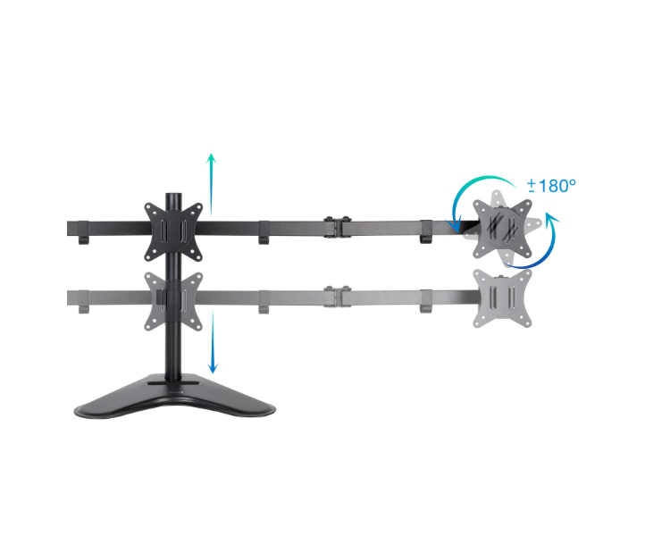 3 pantallas de 17 a 27"/ Rotación de 180º, giro de 90º, inclinación de 45º/ Máximo 7kg por brazo